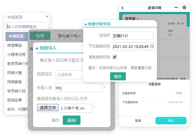 自有商城、社群活动推广、学员分销等线上渠道线索,自动导入系统